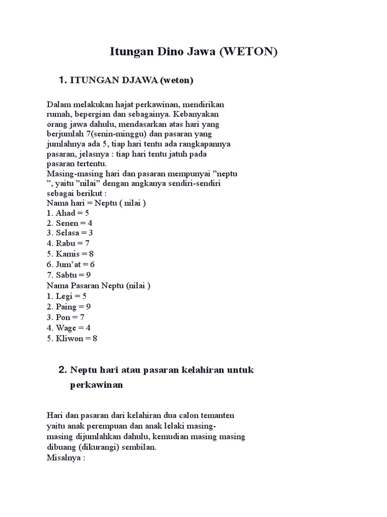 Pasaran Dino : Spiritual Jawa Hitungan Dina Apik Kanggo Tetanduran Facebook : We did not find results for:. Check spelling or type a new query. Maybe you would like to learn more about one of these? We did not find results for: