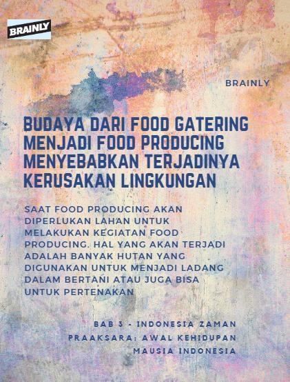 Namun, food producing adalah kehidupan manusia untuk mengusahakan setiap sumber kekayaan alam yang ada. Apa yang sering dikaitkan dengan food gathering? Pola hidup dari food gathering digantikan dengan pola food producing. Perkembangan zaman batu yang dapat dikatakan paling penting dalam kehidupan manusia adalah zaman batu baru atau neolithikum. Feb 26, 2021 · perubahan pola mendapatkan makanan secara drastis dari food gathering ke food producing terjadi pada zaman.