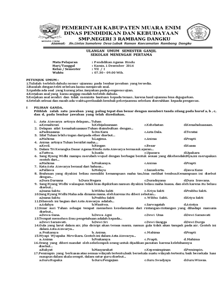 / Soal Uts Agama Hindu Kelas 3 Semester 2 Kurikulum 2013 : Soal Uas Ukk Pai Kelas 3 Sd Semester 2 Dan Kunci Jawaban Bimbel Brilian - Menara kudus, akulturasi antara islam (fungsinya sebagai masjid) dengan hindu (ciri fisik menyerupai bangunan pura pada agama hindu).